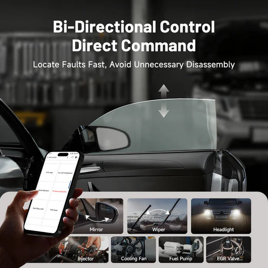 Activate injectors, cycle windows and mirrors, turn lights on/off, test EGR valves, and more, all without dismantling a thing.
