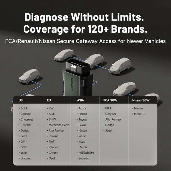 Turn your smartphone into a fully capable diagnostic workstation trusted by workshops, mobile mechanics, and serious DIYers worldwide. The TopScan Master is the flagship edition in the TopScan lineup, delivering advanced diagnostics, bi-directional controls, 30+ maintenance functions, and next-generation vehicle protocol support, all packed into a compact Bluetooth tool that fits in your glovebox.