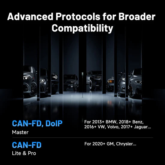 While all TopScan editions support the latest CAN-FD protocol, the Master version goes further, offering full DoIP support for high-speed diagnostics on next-generation models, including: