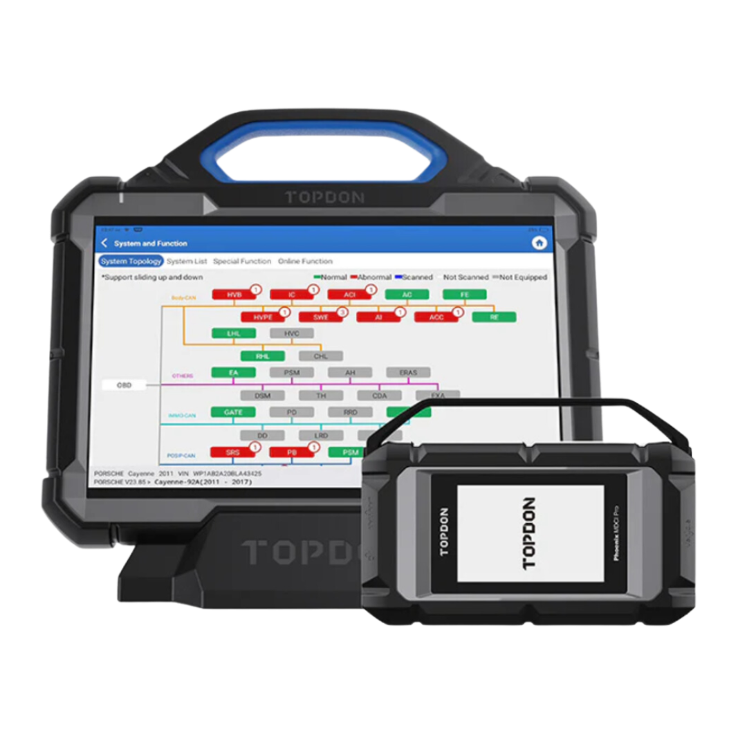 The TOPDON Phoenix Max is a flagship diagnostic tablet built for professional workshops handling anything from cars to trucks, buses, and earth-moving machinery. With OE-level coverage, online programming, an oscilloscope, and optional ADAS calibration, it’s designed to take on the most demanding jobs.