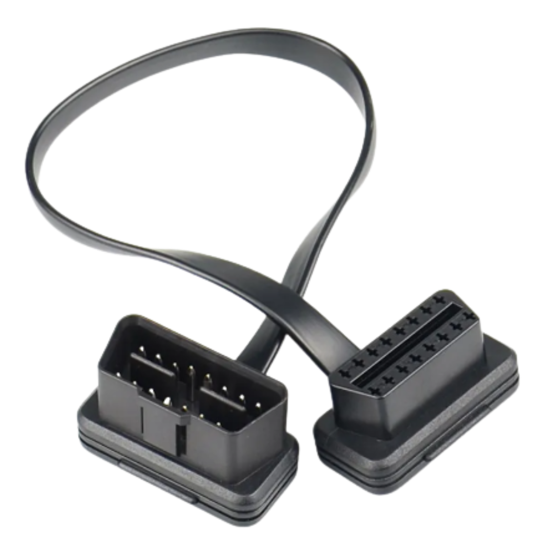High quality OBD2 male to female extension flat slim cable. Can be used to relocate your OBD2 port.