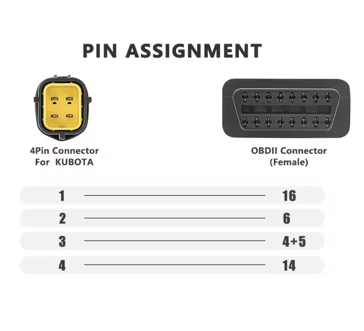High Quality OBD Adapter for Kubota 4 Pin to 16 Pin